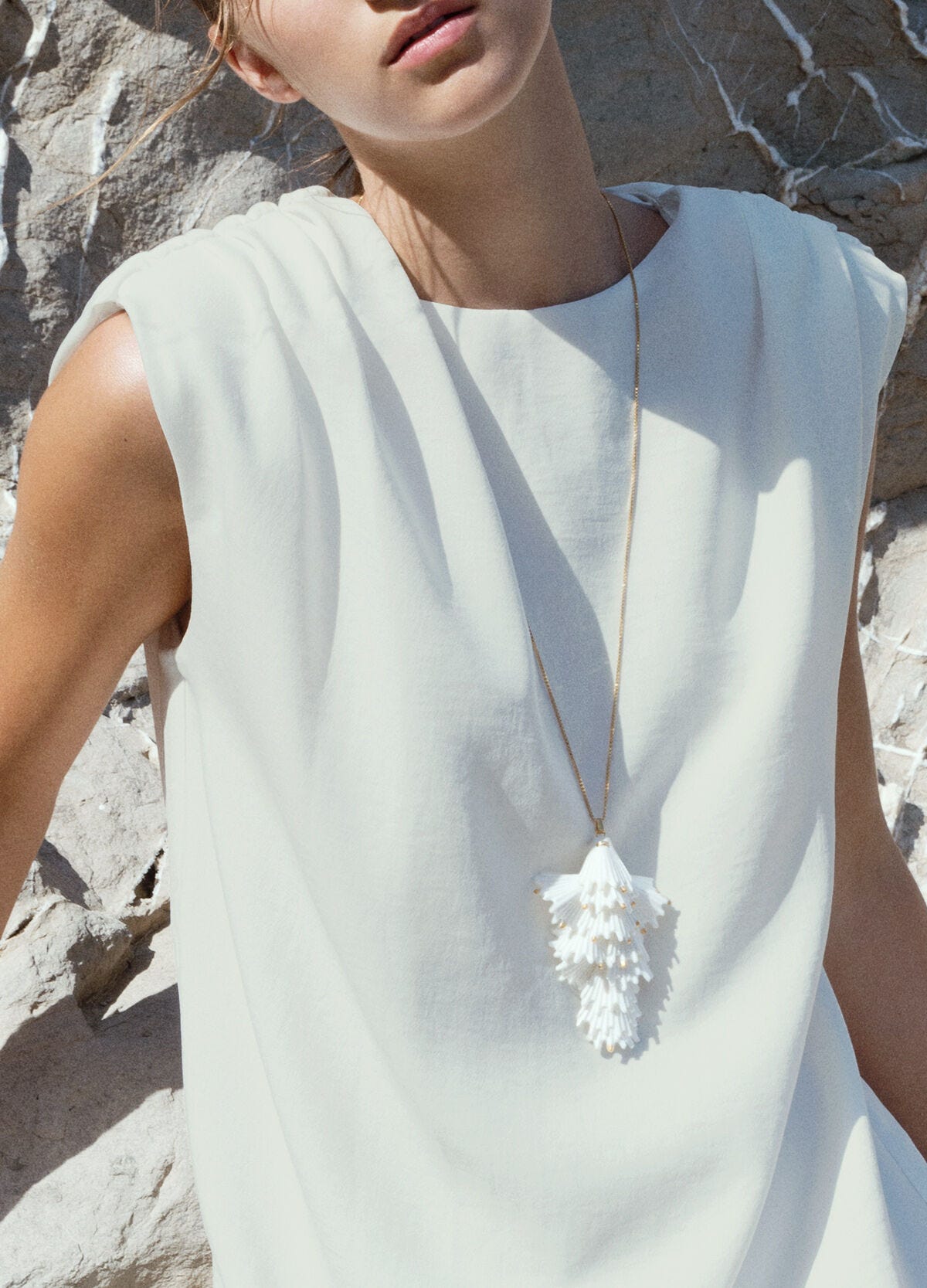 Pendant in white matte porcelain from the Actinia collection, designed by the acclaimed jeweler Raluca Buzura for Lladró. Inspired by the incredible diversity of sea life, this unique and unrepeatable creation is modelled entirely by hand.