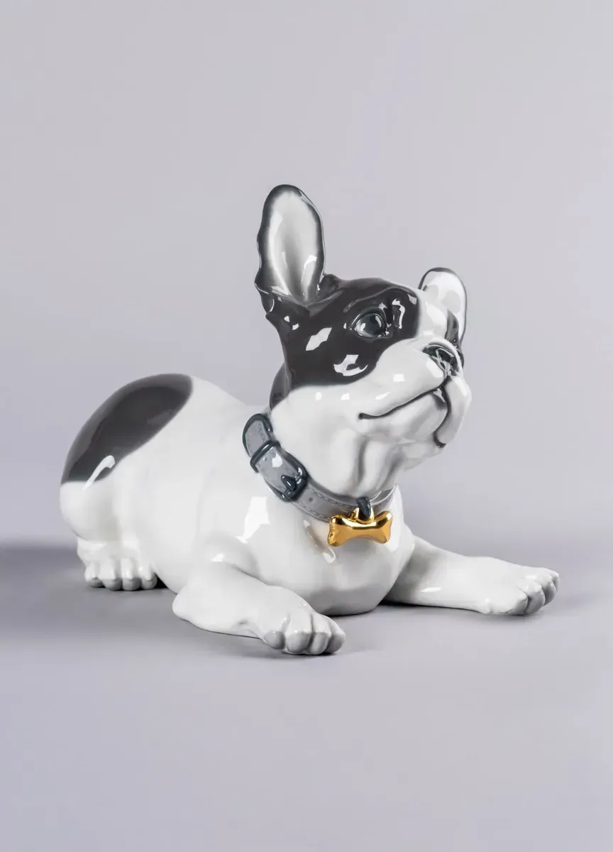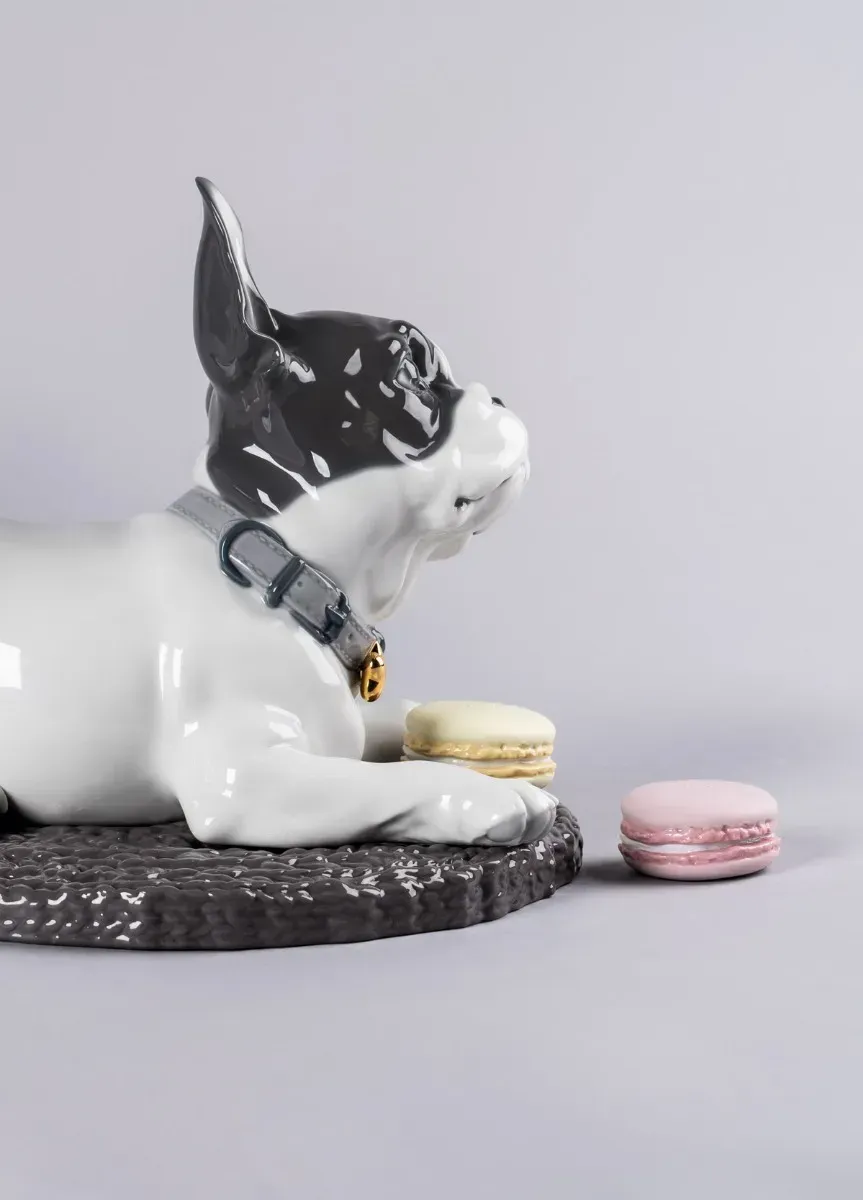 Funny piece of porcelain from the Dog & Candy collection. A charming French bulldog plays with some macarons in this cute creation that will delight animal lovers.