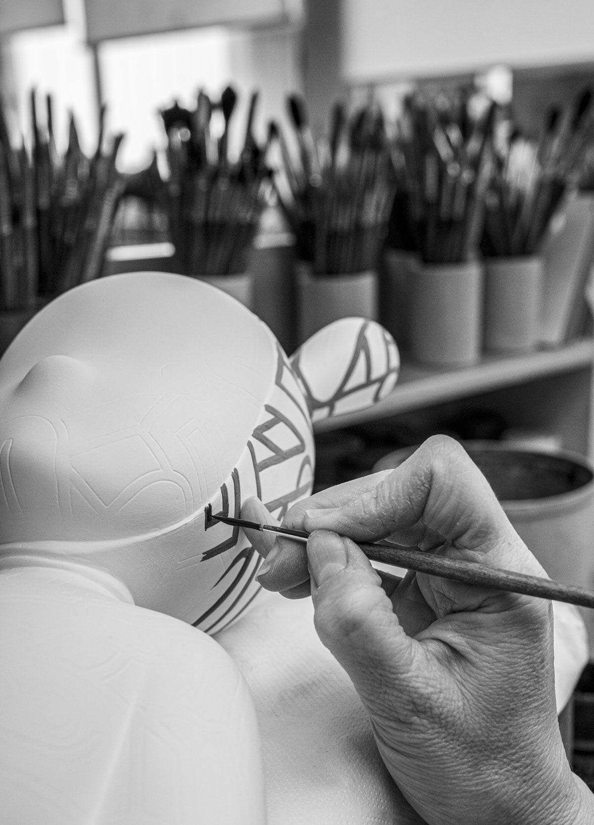 This limited edition is fully hand-decorated in a complex pattern of yellow and black. A three-dimensional space that invites exploration from every angle, reflecting the artist’s ability to create visual narratives that unfold and expand.