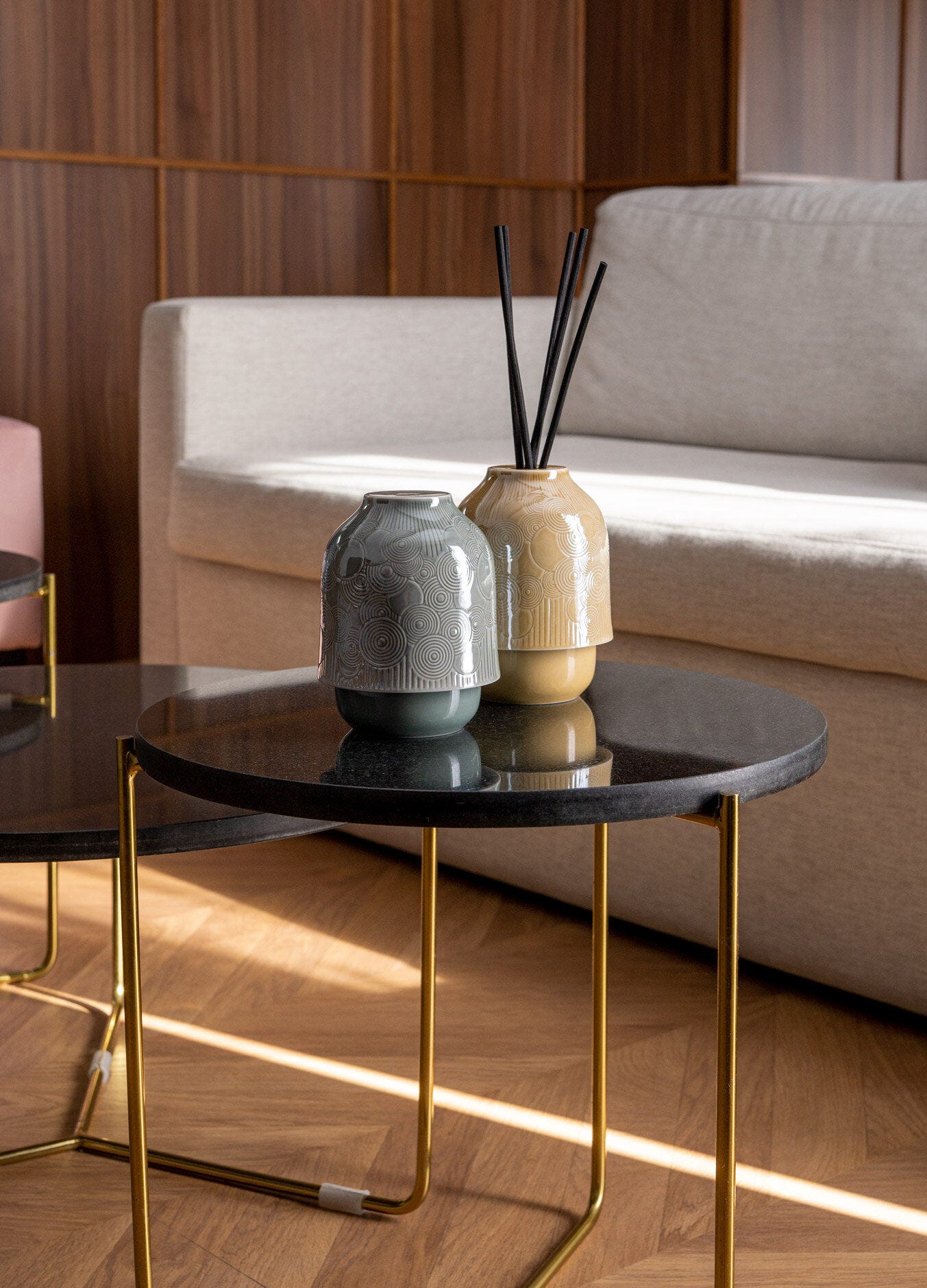 Esta vela pertenece a la colección Campanella, inspirada en las antiguas cajas lacadas de Japón. Urushi-nuri (漆塗) significa cubierta de laca y denominaba a los objetos que, decorados con diversas técnicas, se cubrían con la salvia extraída del árbol de laca para aumentar la intensidad de sus acabados y su resistencia.