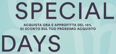 Durante gli Special Days, dal 22 gennaio al 1° febbraio, ogni ordine include una carta sconto del 15% da utilizzare su un acquisto successivo.
