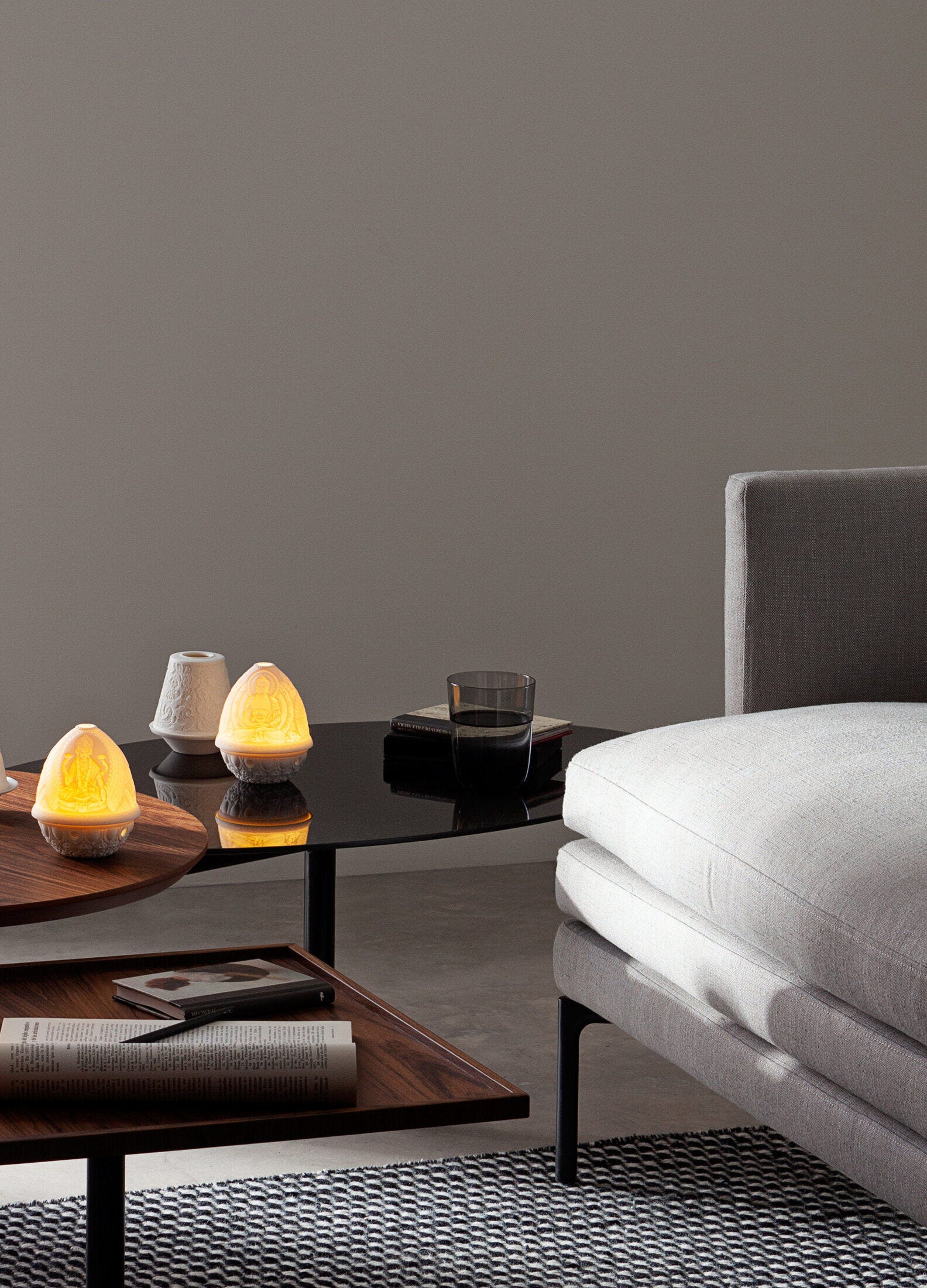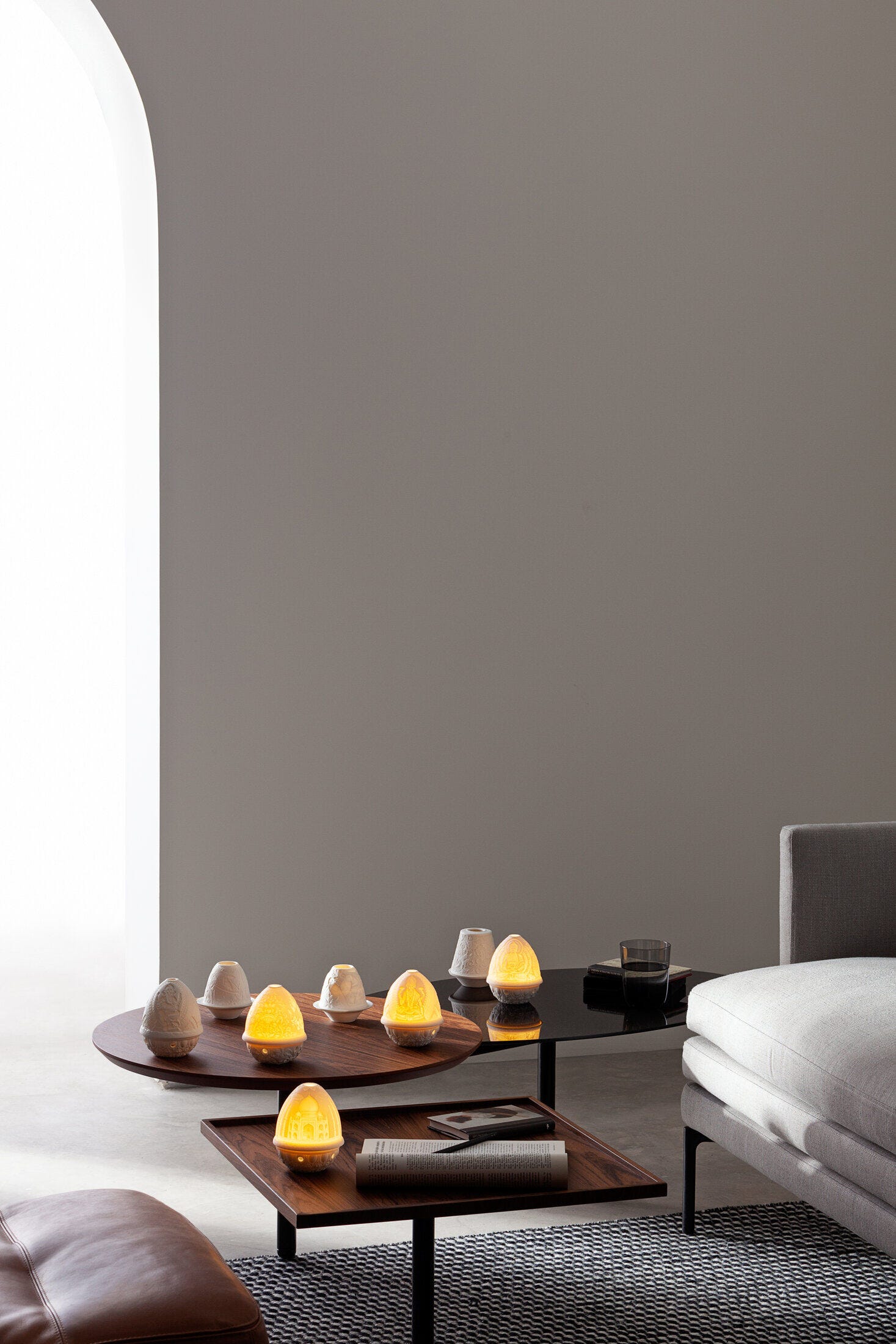ポーセリンのシェードに描いた繊細な模様は光を通すことで柔らかく浮かび上がり、私たちの日常を癒しの空間へと変えます。