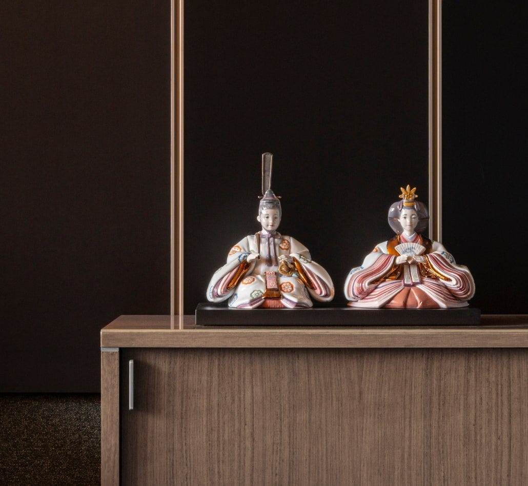 リヤドロで人気を博す「雛人形(花文様)」の特別限定版が誕生しました。パステルカラーの着物と彩り鮮やかな花文様はそのままに、富と繁栄を象徴する銅色が随所に施された華やかな雛人形です。世界で50体のみ制作される希少性の高い作品です。美しく洗練された雛人形は和洋を問わずモダンなインテリアにも合わせやすく、どこに飾っても存在感が際立ちます。