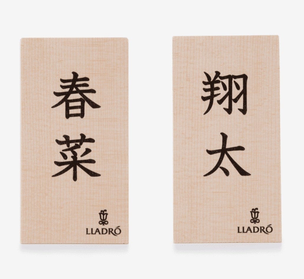 期間中に、リヤドロ節句作品本体(アクセサリーを除く)をお求めいただいたお客様に、木製名入れ立札をプレゼントいたします。